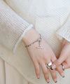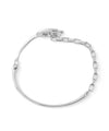 バックルのようなモチーフとスクエアチェーンが目を惹き、手元にアクセントを与えるブレスレット。