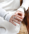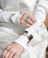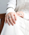 立体的なフォルムが目を惹き、手元にアクセントを与えるリング。