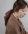 特徴のあるスクエアデザインが、うしろ姿をこなれた雰囲気に仕上げるシュシュ。